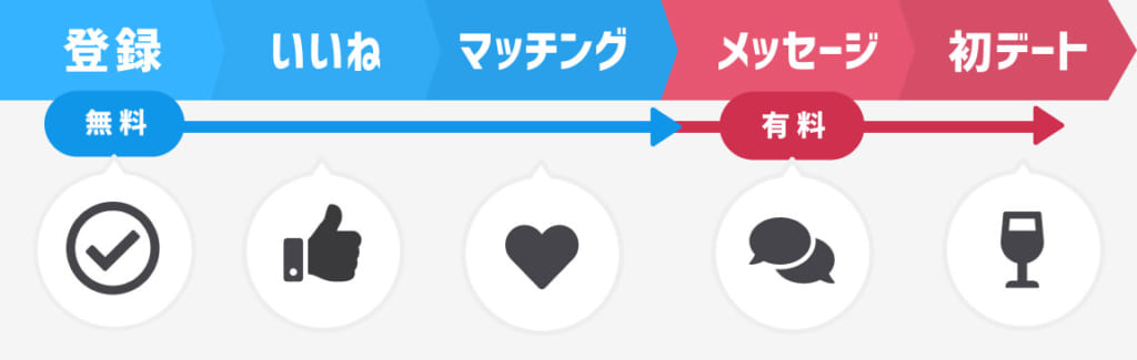 上図の通り、恋活アプリは実際にデートにいくまでは全てネット上で完結します。
