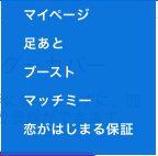 マッチドットコム のスマホアプリでは、どのメニュー画面でも左上にハンバーガーメニューがあります。
