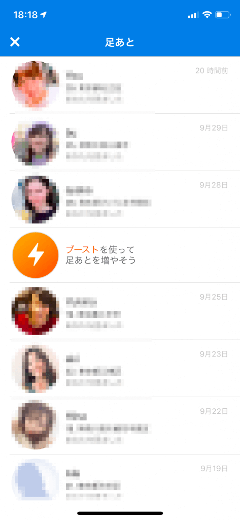 足あと機能では、相手のプロフィールと足あとを残した時間が表示されます。