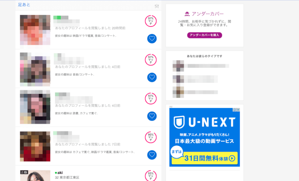 足あとを増やすことは、マッチ確率を上げることに繋がります。