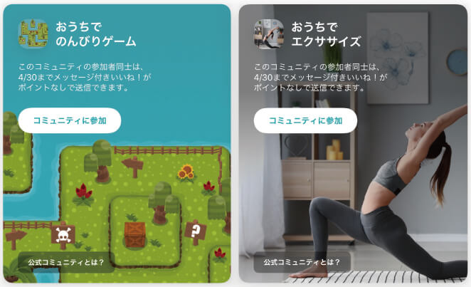 さらにペアーズでは現在の社会状況を受け、「おうちでのんびりゲーム」「おうちでエクササイズ」という公式コミュニティを公開。