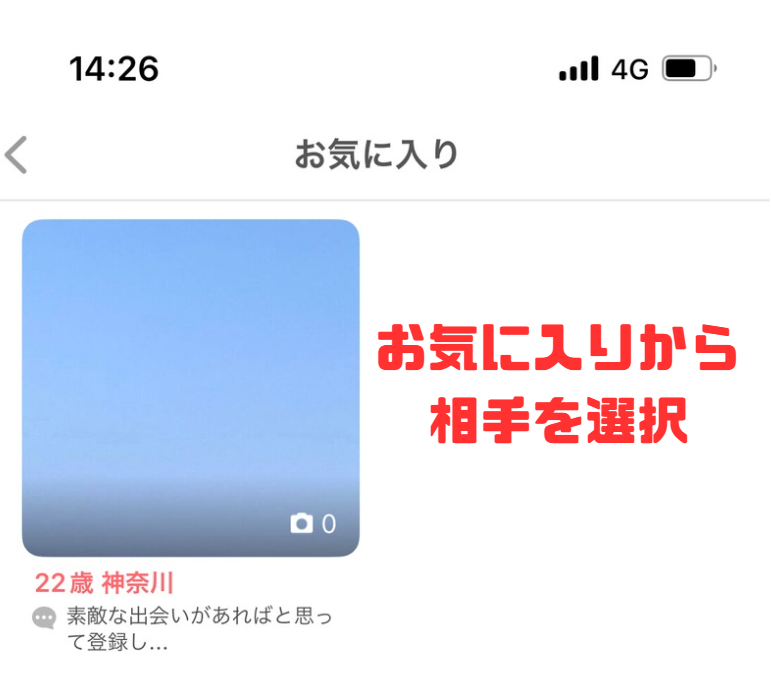 無料プランや「いいね!」の制限がかかっている場合でも、「お気に入り」機能を使うことで気になる相手をキープしておくことができます。