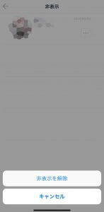 3.自分が非表示にした相手が表示されるので、解除したい相手の【・・・】ボタンを選択する