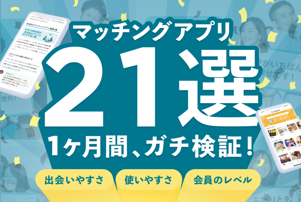 - 【ガチ検証】編集部でマッチングアプリ21個を徹底比較!