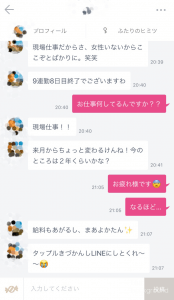 「タップルだと電車や会社で開きにくいんで、ラインにしませんか?」