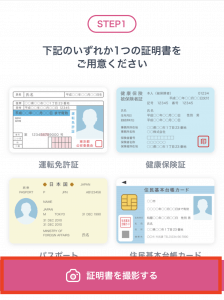 年齢確認のできる身分証全体が映るように、少し離れて撮ることをおすすめします。