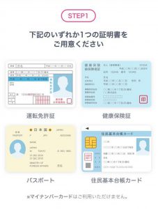 年齢確認のできる身分証全体が映るように、少し離れて撮ることをおすすめします。