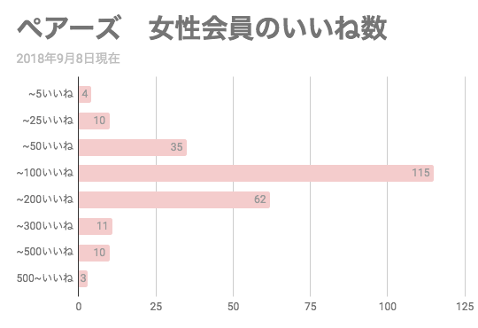 それでは次の章で、ペアーズの女性会員がもらっている平均いいね数を見ていきましょう。