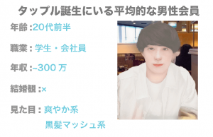 タップル誕生に生息する男性会員は20代前半がめちゃめちゃ多い印象。そしてマッシュへア率がとても高い(笑)