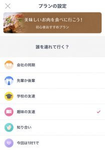 1)まずは行きたいプランを選択し、誰と行くのかor一人で行くかを選択します。