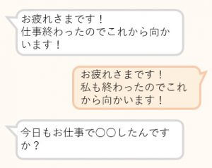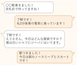 こんな感じでメッセージが始まり、待ち合わせ場所に着く直前はこんなやり取りです。