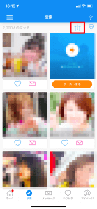 スマホアプリだと検索画面の⇅をタップすると、表示されるので