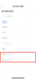 「両想いマッチ」と「想われマッチ」が表れます。