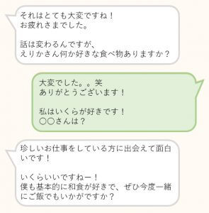 「お会いしてもっとお話ししてみたいです。今度お食事でもいかがですか?」
