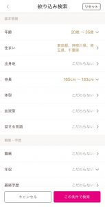 ゼクシィ縁結びはお相手を条件で絞り込んで探すことができます。