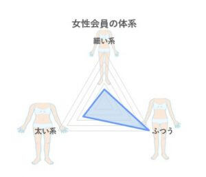 ふつう体系の女性が圧倒的に多く、細い女性よりもふくよかな女性の方が若干多いことが分かります。