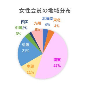 ゼクシィ縁結びの女性会員の半分は関東に住んでいるので、関東圏に住んでいる男性はかなり狙い目です。