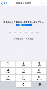 登録した電話番号に、メッセージで6桁の番号が送られてくるので、その番号をログイン画面に入力します。