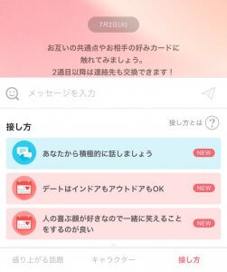 登録した好みに基づいて相性の良いお相手をピックアップしてくれます。様々なカテゴリーのカードがあるので、共通点が多い相手を探しやすいです。