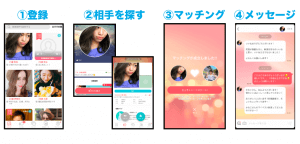 また男女比が6:4と、他のマッチングアプリに比べて女性が多いのが特徴です。また次の章で説明しますが使い方も簡単なので初心者にもおすすめです。