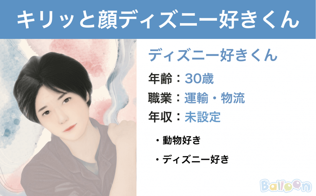 Omiaiで出会える男性会員2人目はキリッと顔のディズニー好きくん