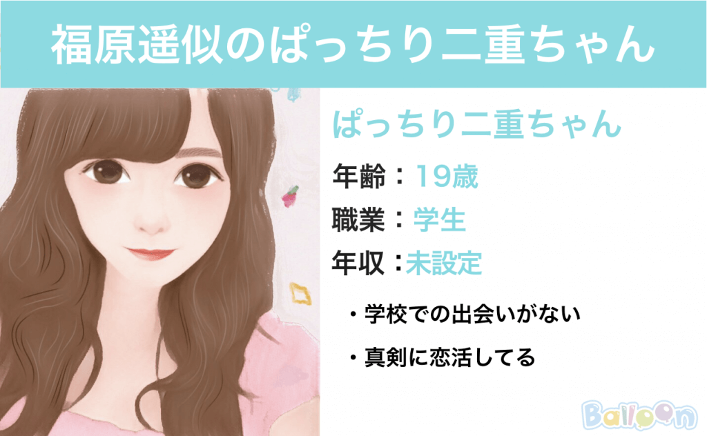 ペアーズで出会える女性会員2人目は福原遥似のぱっちり二重ちゃん