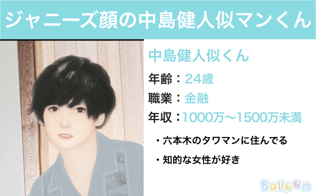 彼、セクシーゾーンというアイドルグループの中島健人君に非常に似ていました!その上、六本木のタワーマンションに住んでいるらしいです。