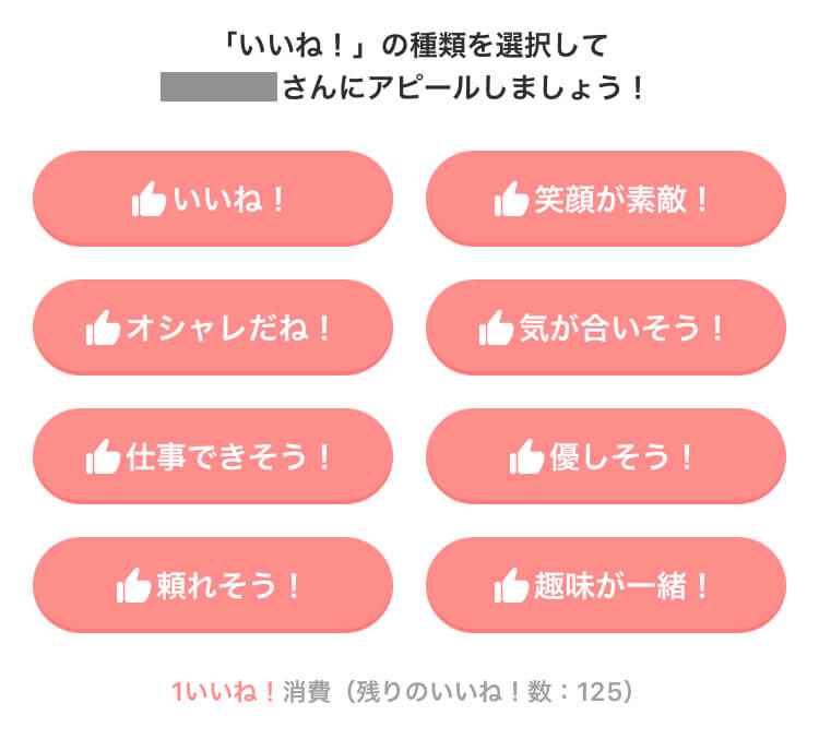 この項目から相手に送りたいいいねの種類を選んで、いいねを送ることができます。