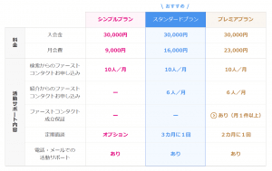 定期面談もオプションになるため、基本的には自分で活動をしないと出会えないプラン。