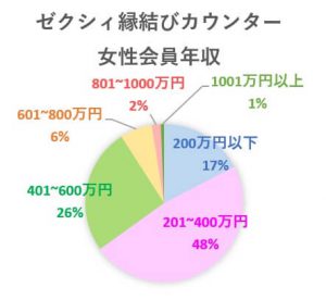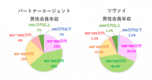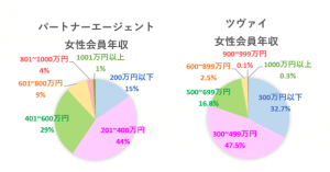 パートナーエージェントやツヴァイと比較すると女性会員の年収は微妙に低くなっています。