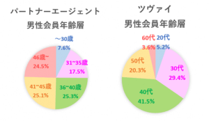 パートナーエージェントやツヴァイと比較すると若干年齢層が低いです。