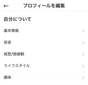 基本情報や価値観、ライフスタイルなどが記載されているとマッチング率も上がりますし、自分の事をより相手に知ってもらうことができます。