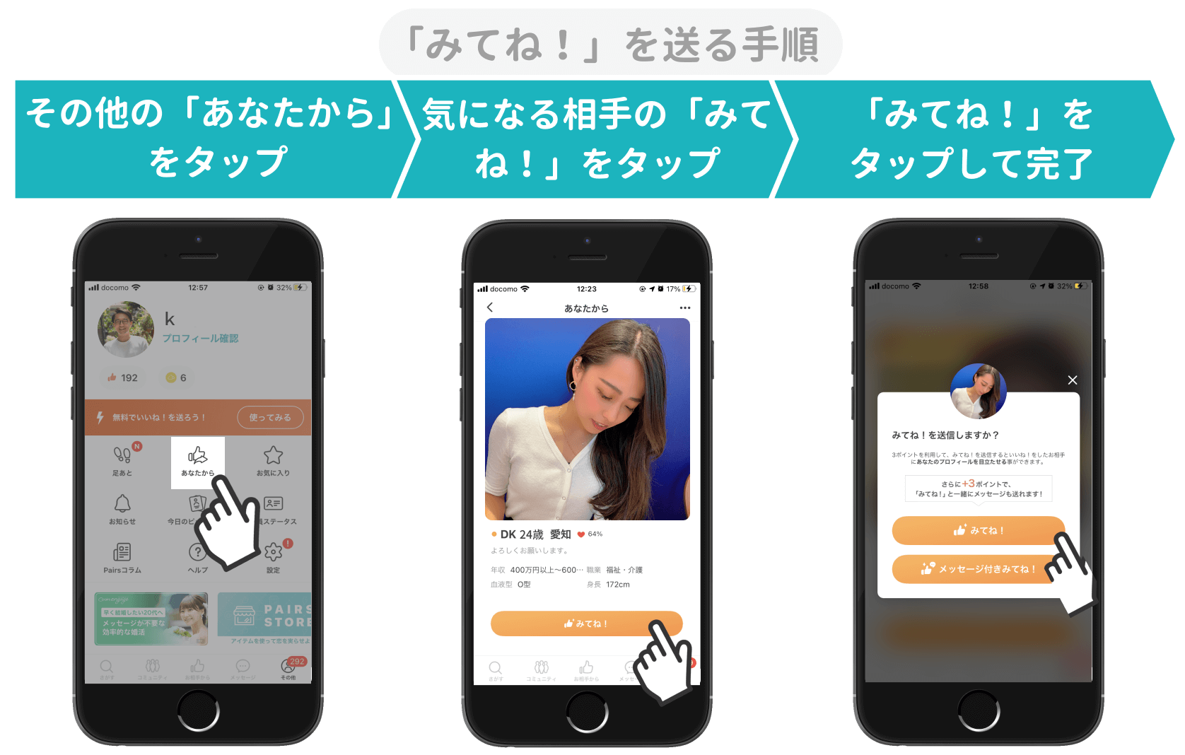 Pairs(ペアーズ)の「みてね!」とは意味あるの?効果や使い方を解説!
