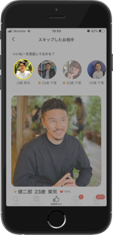 さらに、「スキップしたお相手」(*)のページでも3日間最上部に表示されます。