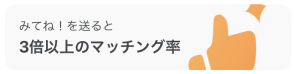 ペアーズでは、通常の「いいね!」よりも「みてね!」は3倍、「メッセージ付きみてね!」は3倍以上のマッチング率であると公表しています。