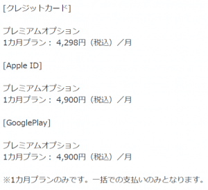 最近できたプレミアムオプションの料金はこちら。