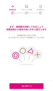 ④ゼクシィ縁結びの価値観診断が始まりますので、18問の質問に答えたらプロフィール作成のチュートリアルが始まります。