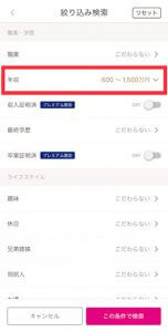 女性の方だったら玉の輿狙いで年収の絞込検索をしたり…
