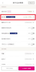 「条件で探す」とは17~8万人いるお相手を自分の好みの条件で絞り込んで検索できるシステムのことです。