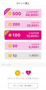 1いいね!は1ポイントで交換することができ、ポイントは以下のとおりの値段です。