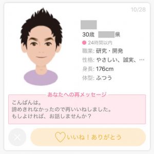 再メッセージのコツは1回目のメッセージ付きいいねと基本的に同じです。