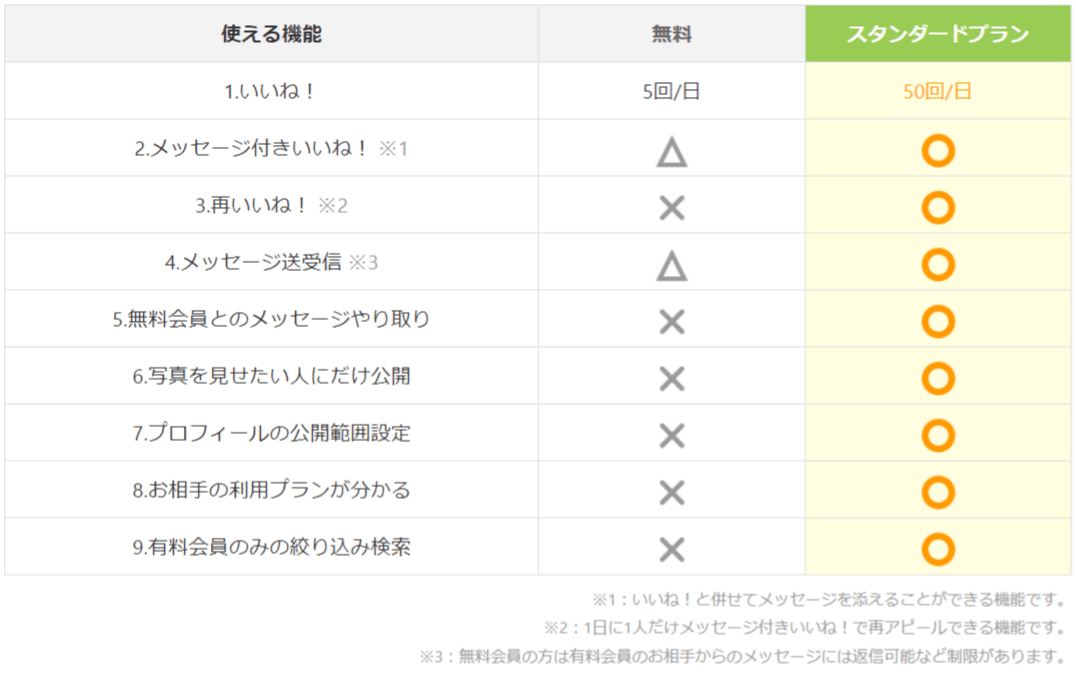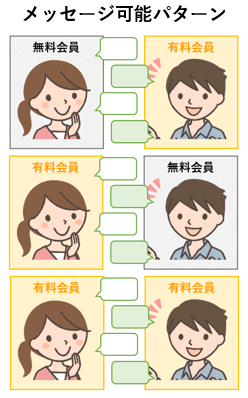 「無料会員どうしではメッセージできないこと」と