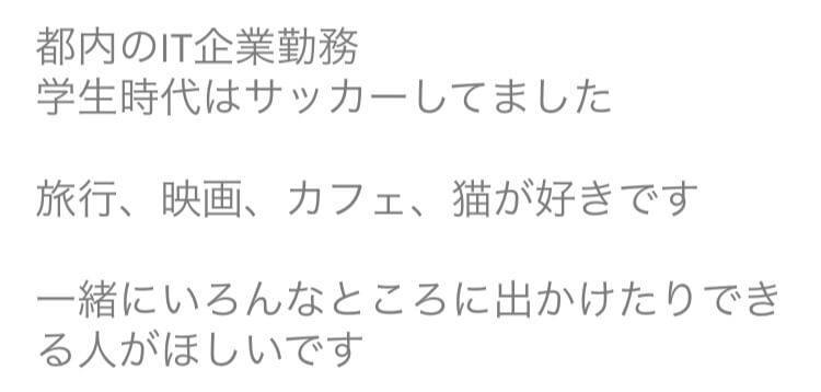 恋人探しなら恋人と一緒にこんなことがしたい、友達探しならこんな趣味が合う友達がほしい、こんなとこに出かけられる友達がほしいなど、自分はそれに当てはまる!という人がLIKEしてくれるでしょう。