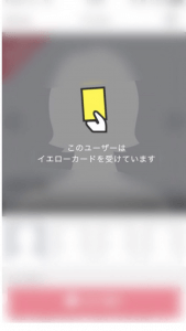 イエローカードを貰うと、その相手とやり取りしている方にも連絡が行きます。その場合、次の画像のように通知が来ます。