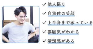 写真で意識すべきポイントは前述の恋人探しのコツにあるポイントと同じで大丈夫です。