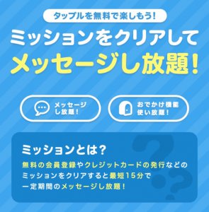 タップルでは、クリアすると有料プランを無料で使える「ミッション」がいくつか用意されていて、ミッションをクリアすれば最大80日間無料で利用できます。