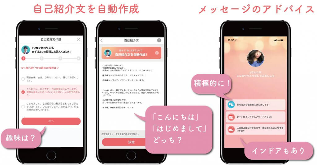 心理学を用いた性格診断や相性診断を行うことができ、より自分に合う相手とマッチングしやすい仕組みになっています。