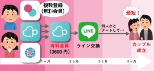 複数同時登録をすると、気になる人とマッチングしたりアプリの機能がいいなと思ってから課金できるため、複数同時無料登録をおすすめします。