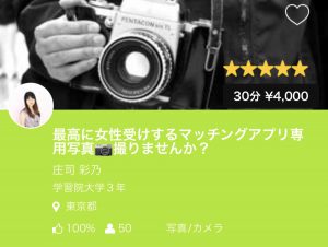 このように分単位で気軽にプロのカメラマンが写真を撮ってくれるサービスがあります。