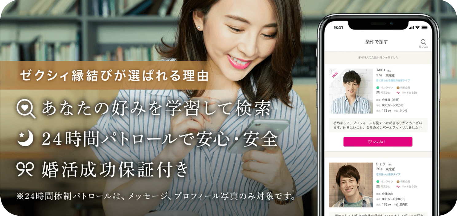 ゼクシィ縁結びは8割の会員が半年でお相手を見つけている婚活アプリ。